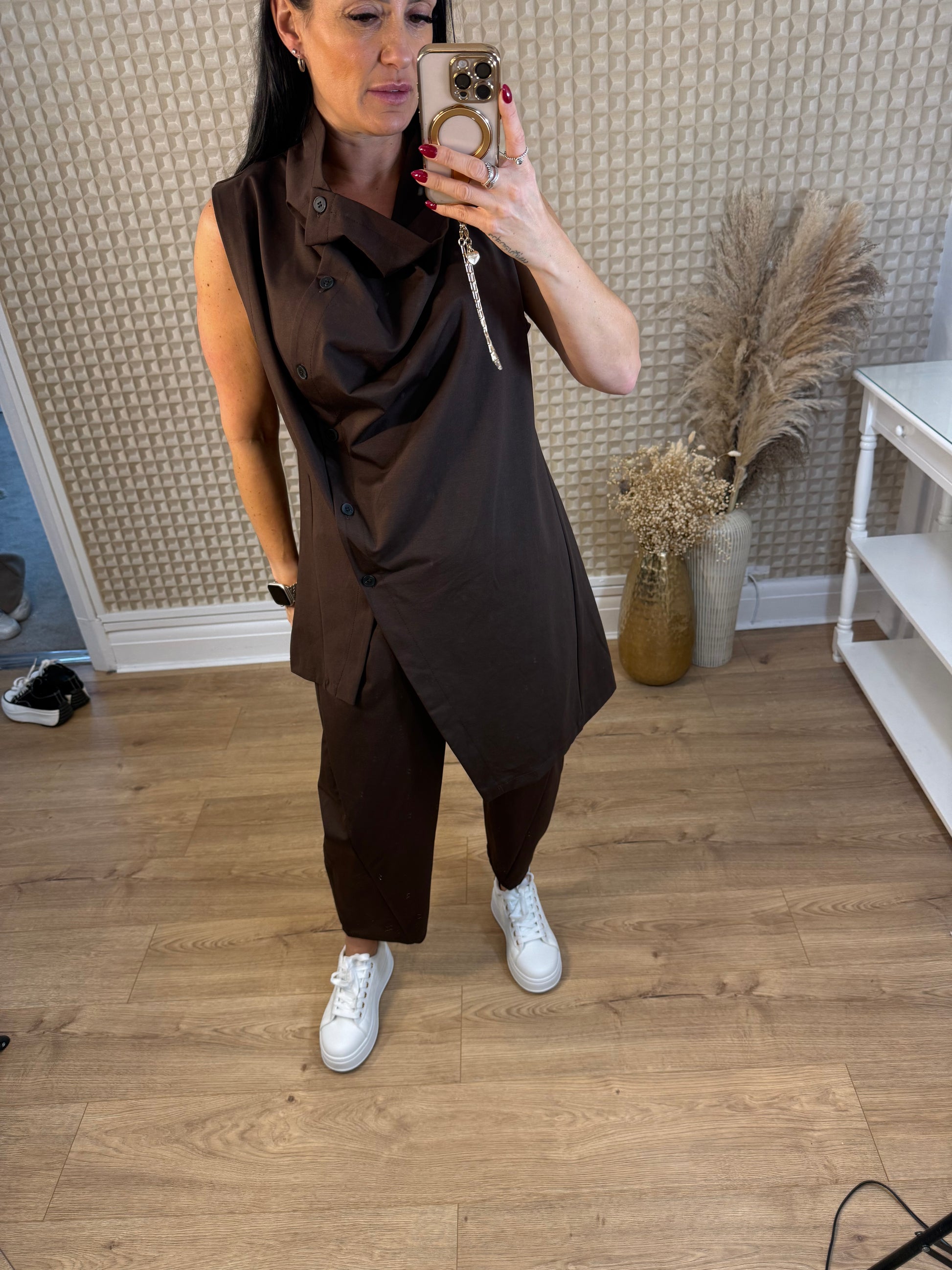 Brown Button Neck Top